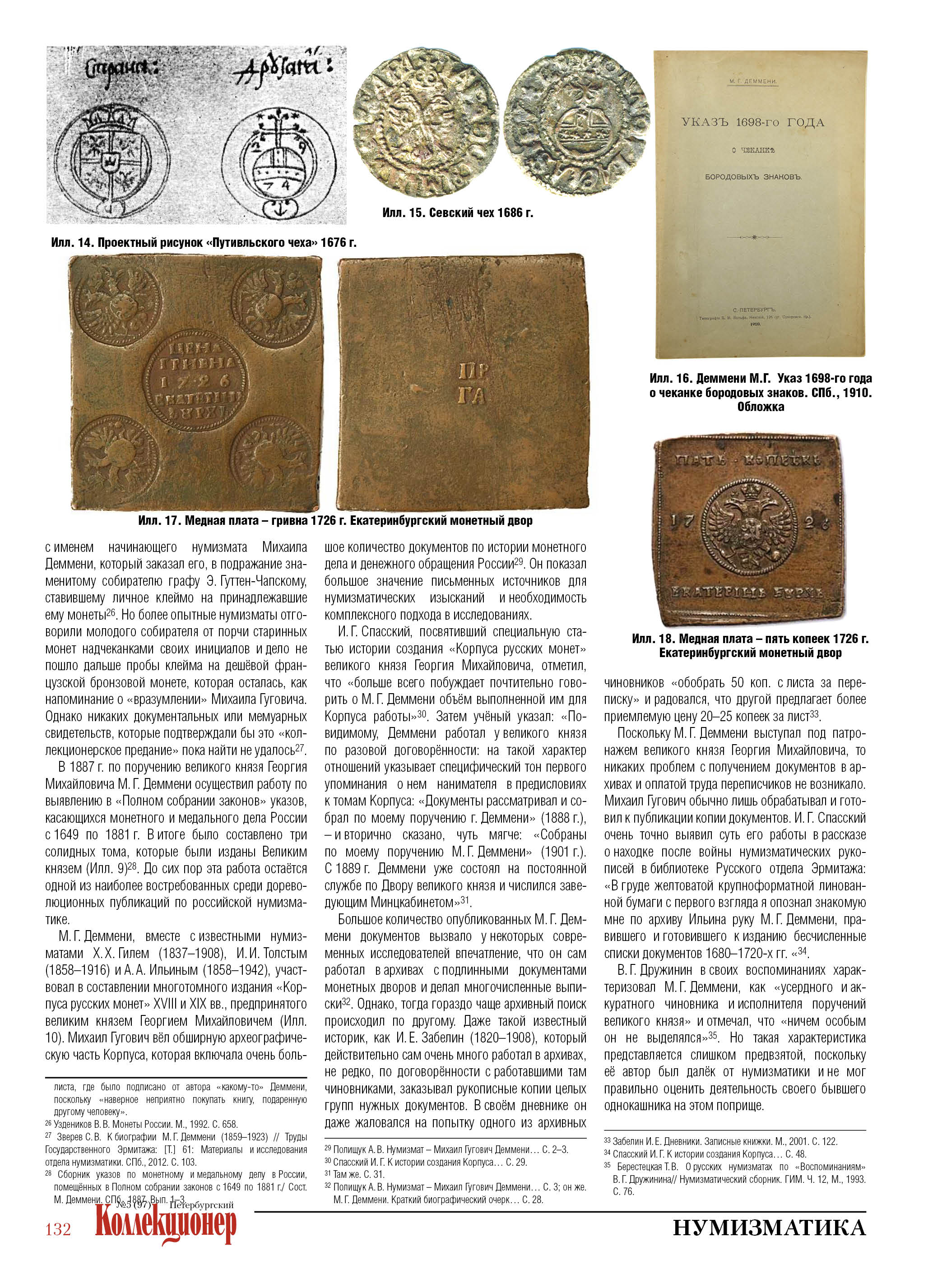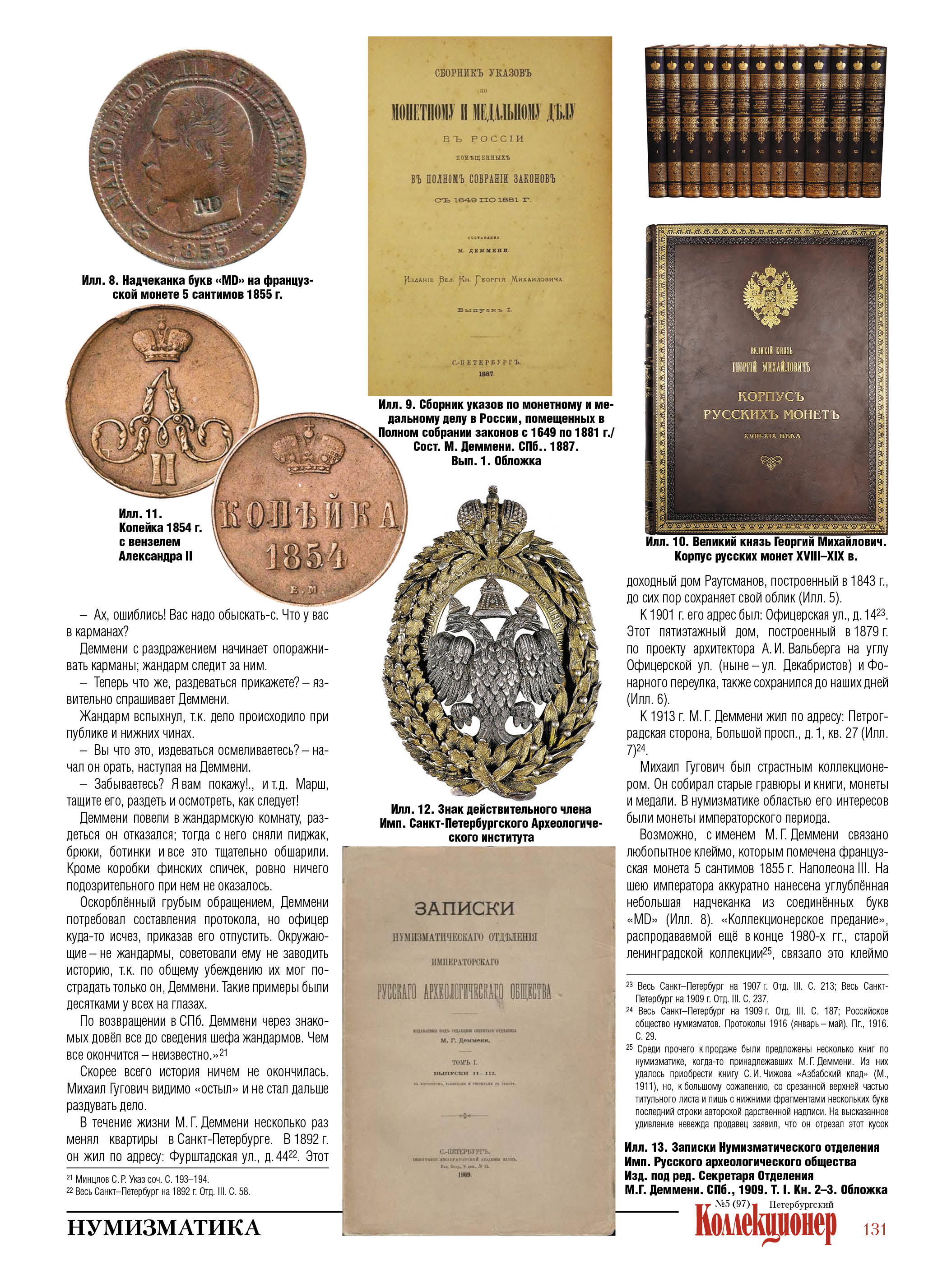 Михаил Гугович Деммени известен как составитель археографического раздела «Корпуса русских монет» и впоследствии заведующий минцкабинетом великого князя Георгия Михайловича.