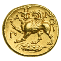 Монетное дело здесь прошло долгий путь эволюции. Чеканка началась в VI веке до н. э. с серебряных монет, на которых изображались львиные головы и божества. В IV веке до н. э. Пантикапей (столица царства, современная Керчь) стал выпускать одни из лучших золотых статеров во всем Средиземноморье . Со временем под влиянием Рима качество монет менялось, но их историческая ценность лишь возрастала.