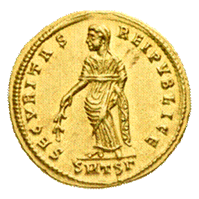 Об.ст.: SECVRITAS – REIPVBLICE. Секуритатас в вуале, стоит прямо, голова влево, удерживает ветвь и юбку.