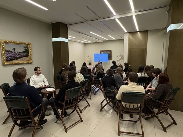 Студенты послушали небольшую теоретическую лекцию, посмотрели, как устроены выставки, попробовали самостоятельно придумать формы работы с разными целевыми аудиториями. Во всем этом нашим студентам помогала научный сотрудник Музея МНК Кристина Владимировна Шаповалова.
